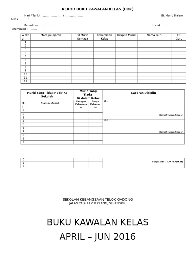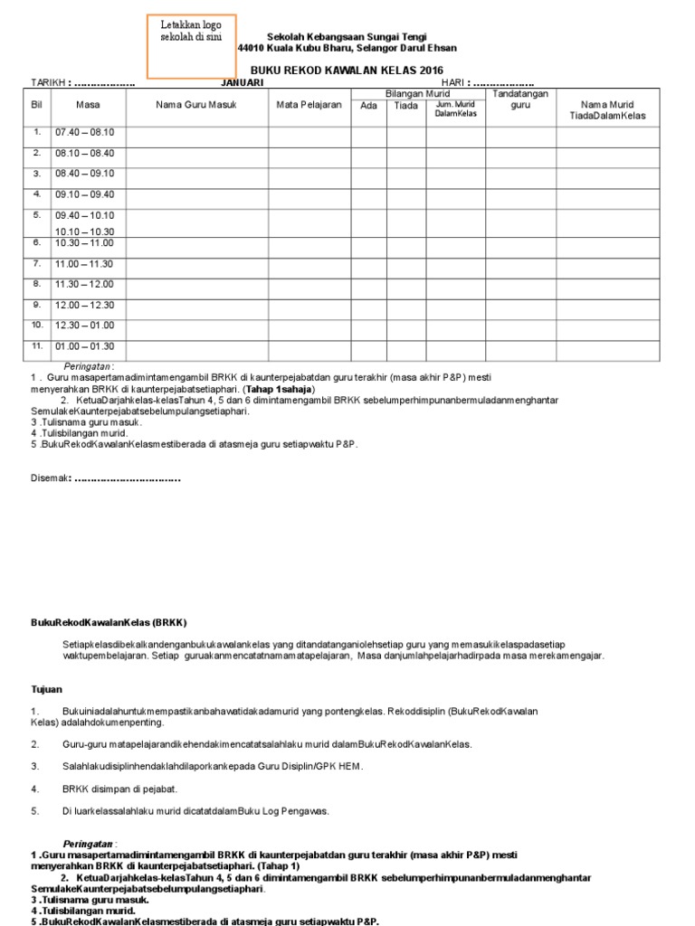 Contoh Buku Rekod Kawalan Kelas 2016 Pdf