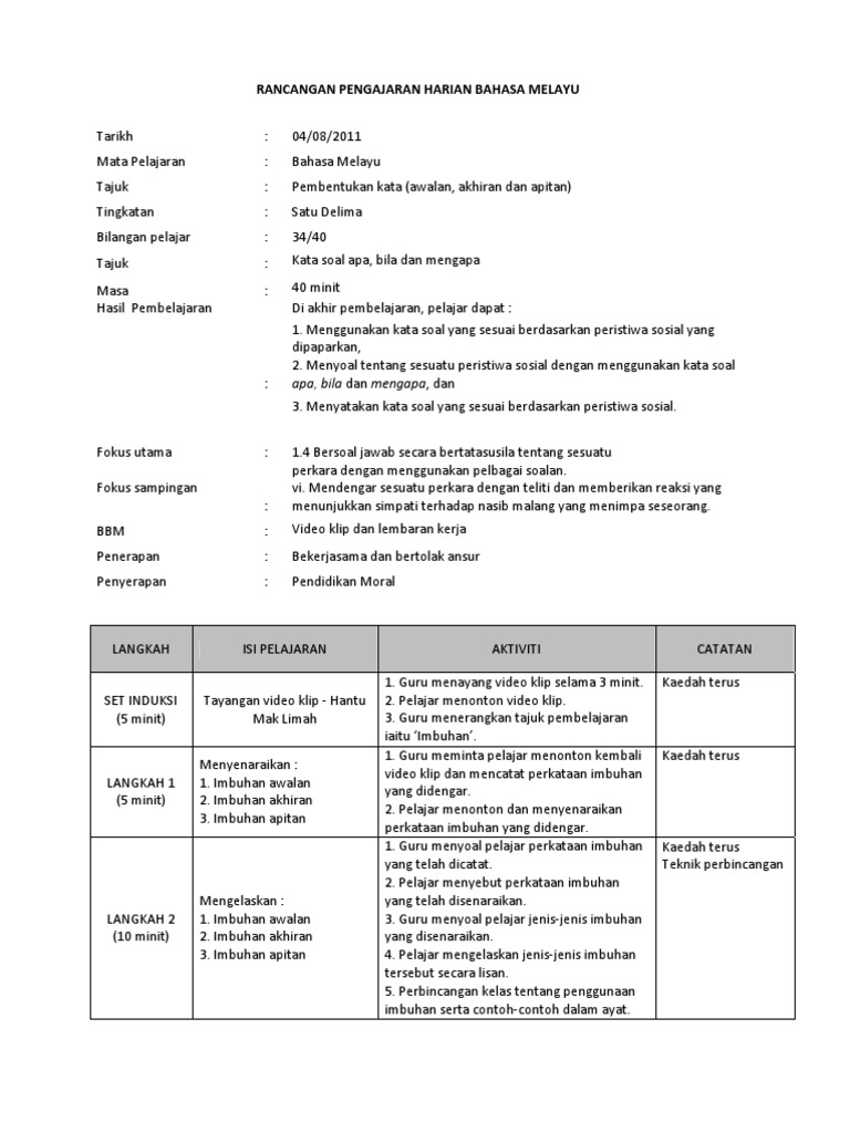 Contoh Rph Bahasa Melayu Tingkatan 1 Lawsoncxt