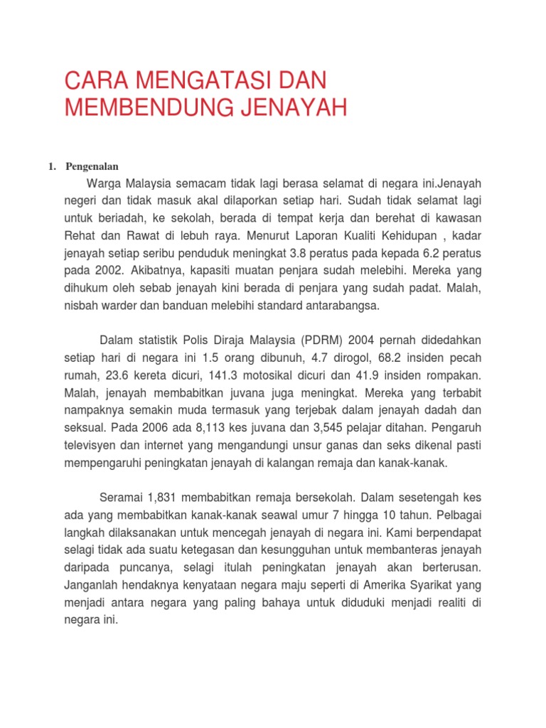 Cara Membanteras Jenayah Antarabangsa Langkah Mengatasi Karangan Bahasa Melayu merupakan antara medan ujian yang mencabar kebolehan para pelajar. Langkah-Langkah Menangani Jenayah Ragut di Malaysia. Pengenalan Warga Malaysia semacam tidak lagi berasa selamat di negara iniJenayah negeri dan tidak masuk akal dilaporkan setiap hari.